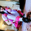 テカテカ黒パンストに包まれたデカ尻震わせてチンポ咥えながら感じまくり/可愛い顔して淫乱女子○生はチンポを咥えながらバシャバシャお漏らししながらおじさんをたっぷりご奉仕/ビンビン勃起チンポに囲まれて興奮潮吹き!